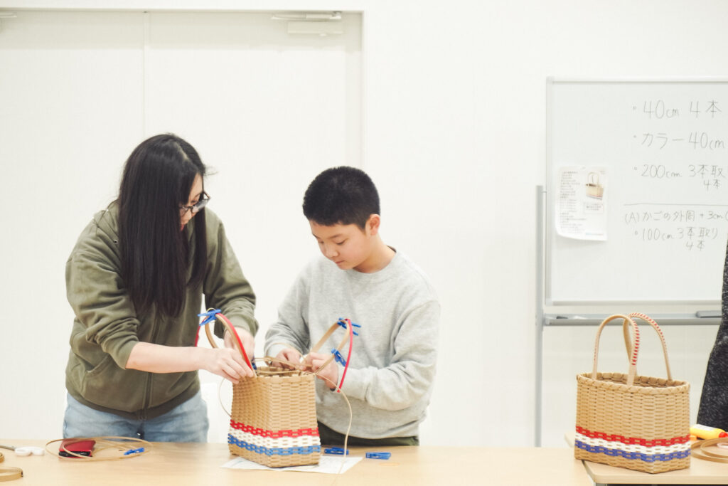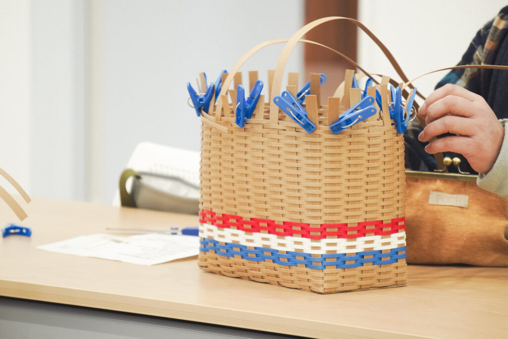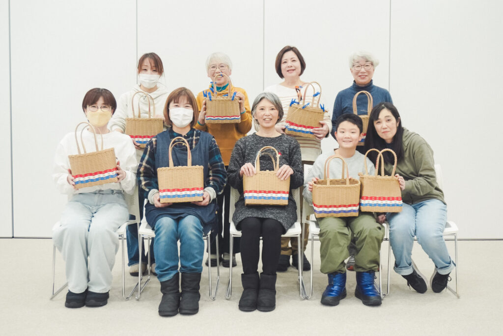 予定の時間はあっという間に過ぎ、惜しくも時間内に完成まで至らなかった方もいらっしゃいましたが、「家で続きをやります!」と意欲は十分。中にはすっかりカゴ編みの魅力にハマり、新たに制作キットを購入して「再挑戦」を決意される方もいました。